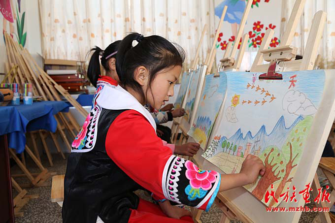 臘灣民族小學(xué)二年級(jí)的學(xué)生在上美術(shù)課