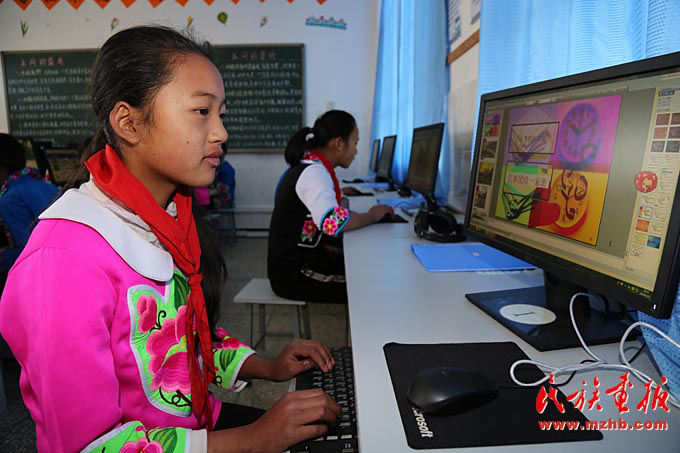 臘灣民族小學(xué)五年級(jí)的學(xué)生在上計(jì)算機(jī)課,李欣潔同學(xué)在認(rèn)真地制作PPT