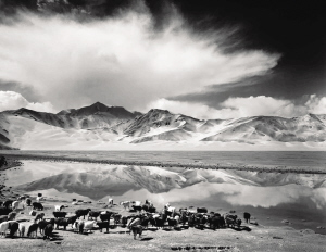 一臺(tái)古老而又沉重的相機(jī),和由它帶來的幾分笨拙而又充滿儀式感的觀看世界的方式,正好對(duì)應(yīng)了馮建國在中國西部尋夢(mèng)的心境。如今,馮建國常教導(dǎo)學(xué)生,“你所向往的東西就純粹地去做”?;蛟S是帕米爾高原千年冰山的呼喚,或許是塔克拉瑪干沙漠遠(yuǎn)古駝鈴的回響,還有青藏高原朝圣的腳步、誦經(jīng)的吟唱……印證了他對(duì)西部的無盡向往和與大畫幅黑白攝影的不解之緣。