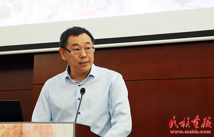 中國少數(shù)民族電影工程領(lǐng)導小組辦公室副主任、宣傳推廣部主任,中國民族影視研究中心主任牛頌主持研討會