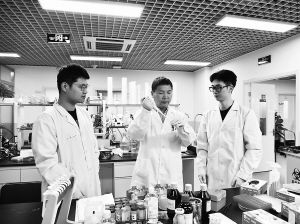 程勇(中)在指導(dǎo)學(xué)生做實(shí)驗(yàn)。 中央民族大學(xué)供圖