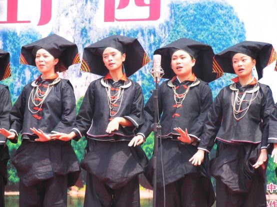 壯族傳統(tǒng)音樂主要是各種山歌曲調,是產生于古代的詩歌、音樂、舞蹈三位一體的古老聲樂藝術。在壯族地區(qū),幾乎每個鄉(xiāng)都有幾個固定的曲調,有用于敘事的平調、抒發(fā)歡快心情的喜調、平緩柔和細膩深沉的詩調,富于教誨性的卜牙(老人)調和表現哀傷悲調等。曲式有支聲式、和聲式和復調式,用于獨唱、領唱、重唱、合唱的民歌調有相應的曲式結構。其中合唱又分為二聲部和三聲部。曲藝有末倫、唱師、比余等,唱師的唱本脫胎于經詩,一般為七言句式,以一鼓一鑼過門,無伴奏。曲牌各地不一,每個地方一般由AB調,比較固定。末倫流傳于桂西南地區(qū),來源于巫調,發(fā)展成為曲藝。其詞為七言或五言,上下句式,以三弦伴奏,藝人自彈自唱,詞很優(yōu)美。內容有說故事、訴苦情、嘆離別等,可長可短,形式靈活。比余流傳于紅水河中游東蘭、鳳山一帶,詞為長短句,腰腳韻,寓言式或隱喻式,生動活潑。演唱時,藝人與聽眾互相呼應,氣氛熱烈。