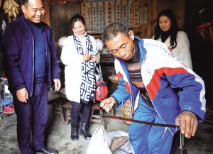 在村里修復舊屋的趙貢彩接到游客電話,馬不停蹄地趕回家中,自家手工制作的苕粉成了游客心心念念的香餑餑。拿出早已生銹的秤桿,一袋袋苕粉被游客搶著購買。“都是留著自家吃的,哪想著能賣出去喲。”笑著說罷,趙貢彩拿出手機,微信一掃,錢款立即到賬。
