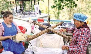 70多歲的趙開娥和63歲的趙素嬋共同開起蕎面攤,現搟、現切、現煮,看得見的好手藝引游客紛紛夸贊。