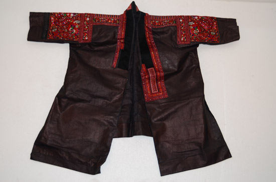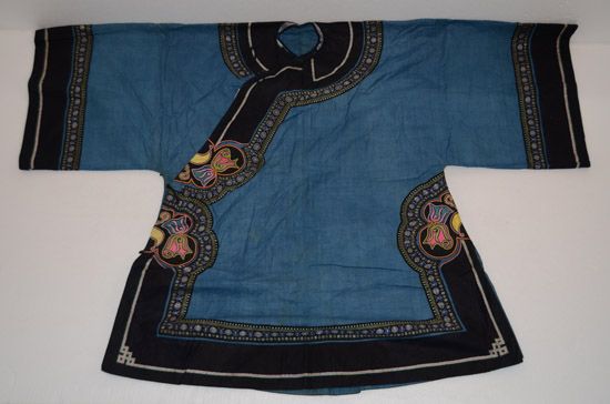 分布在臺江、施秉、鎮(zhèn)遠三縣交界地一帶苗族村寨,以臺江施洞苗族為代表。該服裝上衣為家織布右衽衣,刺繡主要在前襟、衣領、肩袖部分,以黔東南苗族特有的破線繡為主,所繡圖案主要為龍紋,工藝精美,具有民族特點。