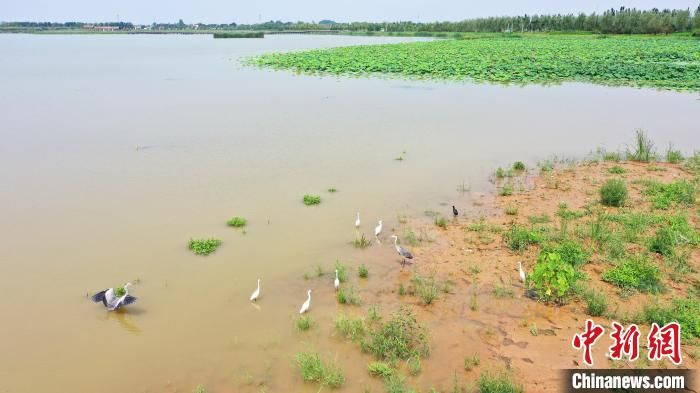 盛夏時(shí)節(jié),雨過天晴,美麗的南宮湖水波蕩漾,蒼鷺、白鷺、綠頭鴨等鳥類在此翔集,棲息覓食。河北省南宮市的南宮湖濕地公園,擁有3000多畝水面和52公里內(nèi)外環(huán)水系,是河北南部依傍縣城最大的人工湖。近年,當(dāng)?shù)貙?shí)施南宮湖水生態(tài)修復(fù)工程,昔日“藏污納垢,蚊蠅亂飛”的舊坑塘成為水清、岸綠、景美的生態(tài)湖、景觀湖。