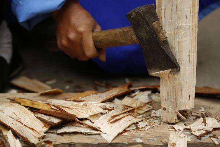 最難的是敲打簧片、割簧片、校單音、校和音這四個程序,最細致,最需要掌握的就是割簧片。把竹管的聲音和簧片的聲音全部調(diào)成一致,然后還要校正聲音。把單音校好以后還有雙管的,如果不把聲音校準(zhǔn),雙管就會和不起來,吹起來也不好聽,就不能用。